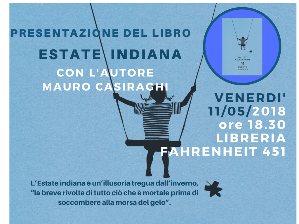 Venerdì 11 maggio alle ore 18,30 alla libreria Fahrenheit 451 ospite lo scrittore Mauro Casiraghi e il suo libro L’Estate indiana.