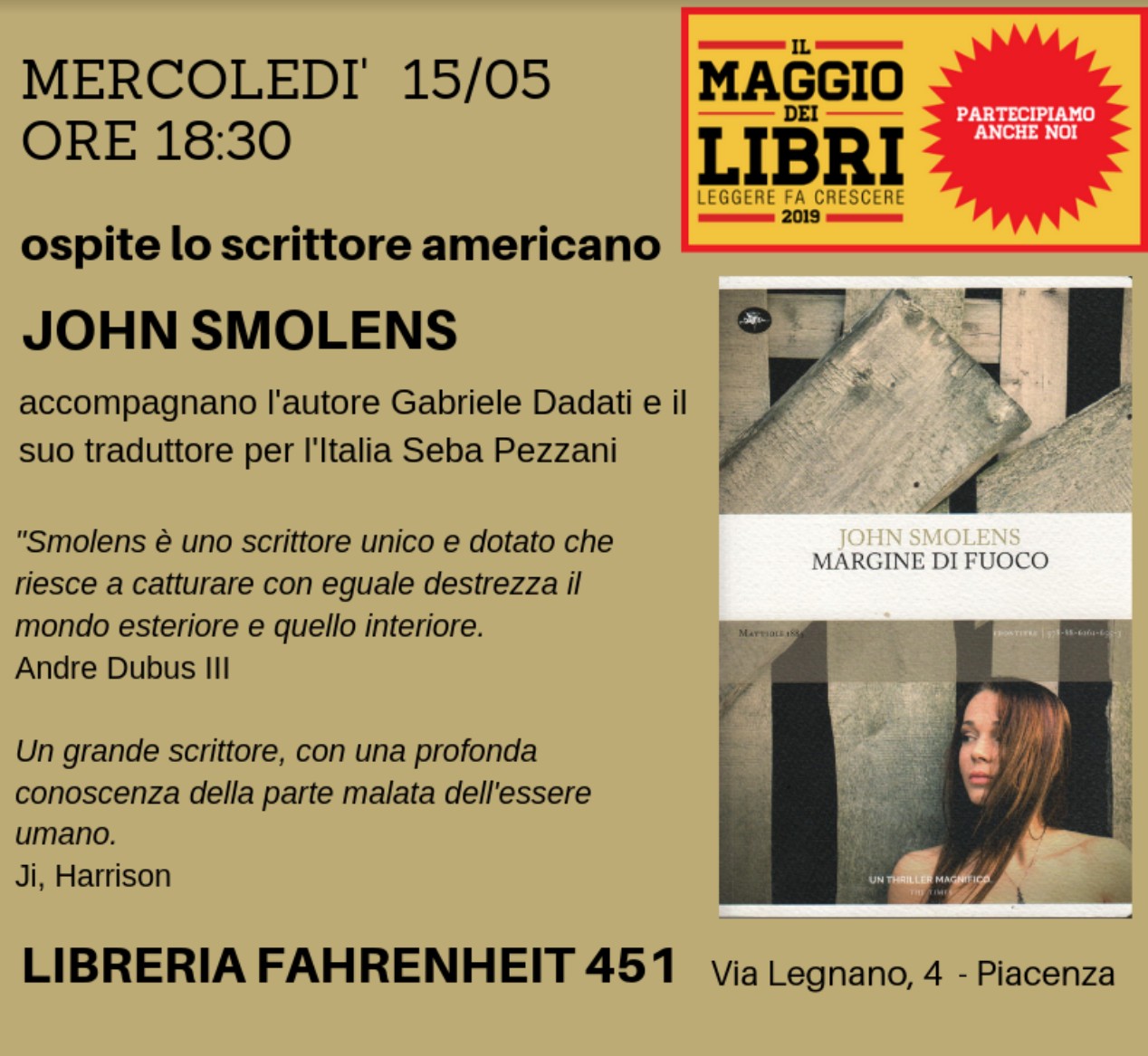 Incontro con l’autore John Smolens La Libreria Fahrenheit 451 vi invita al maggio dei libri per l’incontro con l’autore John Smolens: Condividi: Condividi su Facebook (Si apre in una nuova finestra) Facebook Condividi su X (Si apre in una nuova finestra) X Condividi su Pinterest (Si apre in una nuova finestra) Pinterest Condividi su WhatsApp (Si apre in una nuova finestra) WhatsApp Condividi su Telegram (Si apre in una nuova finestra) Telegram Condividi su LinkedIn (Si apre in una nuova finestra) LinkedIn Invia un link a un amico via e-mail (Si apre in una nuova finestra) E-mail I commenti sono chiusi.