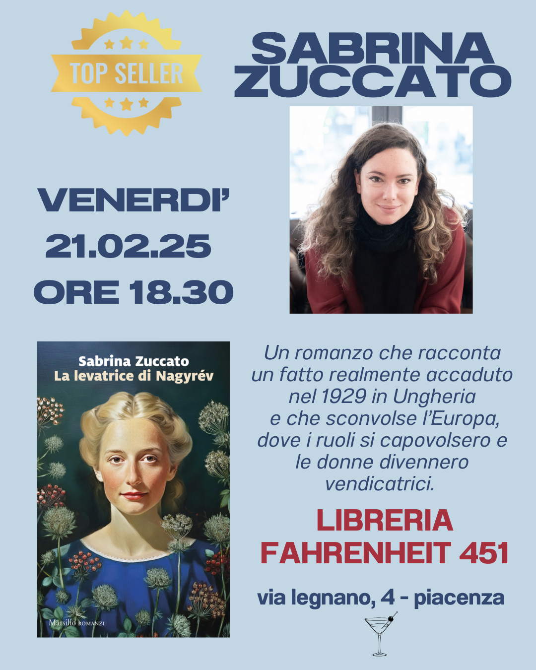 Sabrina Zuccato, autrice de “La levatrice di Nagyrév” (Marsilio), sarà ospite in libreria venerdì 21 febbraio 2025 alle ore 18,30.