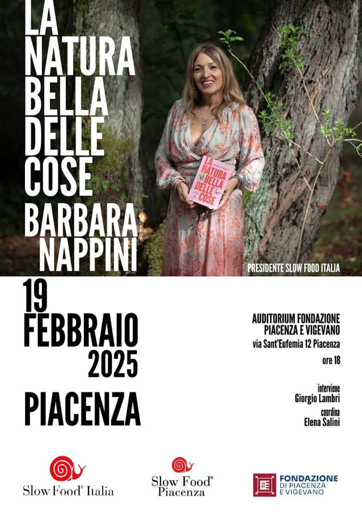 Il 19 febbraio 2025, presso l’auditorium della Fondazione di Piacenza e Vigevano, incontro con Barbara Nappini, presidente di Slow Food Italia e autrice di “La natura bella delle cose” (Slow Food Editore).