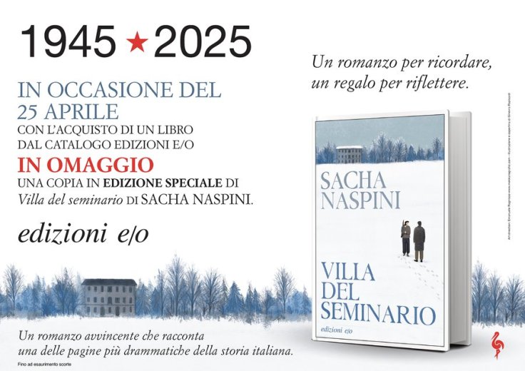 In occasione del 25 aprile, con l’acquisto di un libro dal catalogo Edizioni E/O, in omaggio una copia in edizione speciale di “Villa del seminario” di Sacha Naspini.