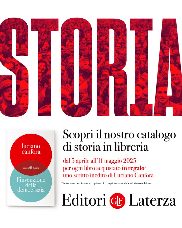 Promozione Laterza: con l’acquisto di almeno un libro della selezione dei libri di storia Laterza, in regalo lo scritto inedito “L’invenzione della democrazia” di Luciano Canfora.