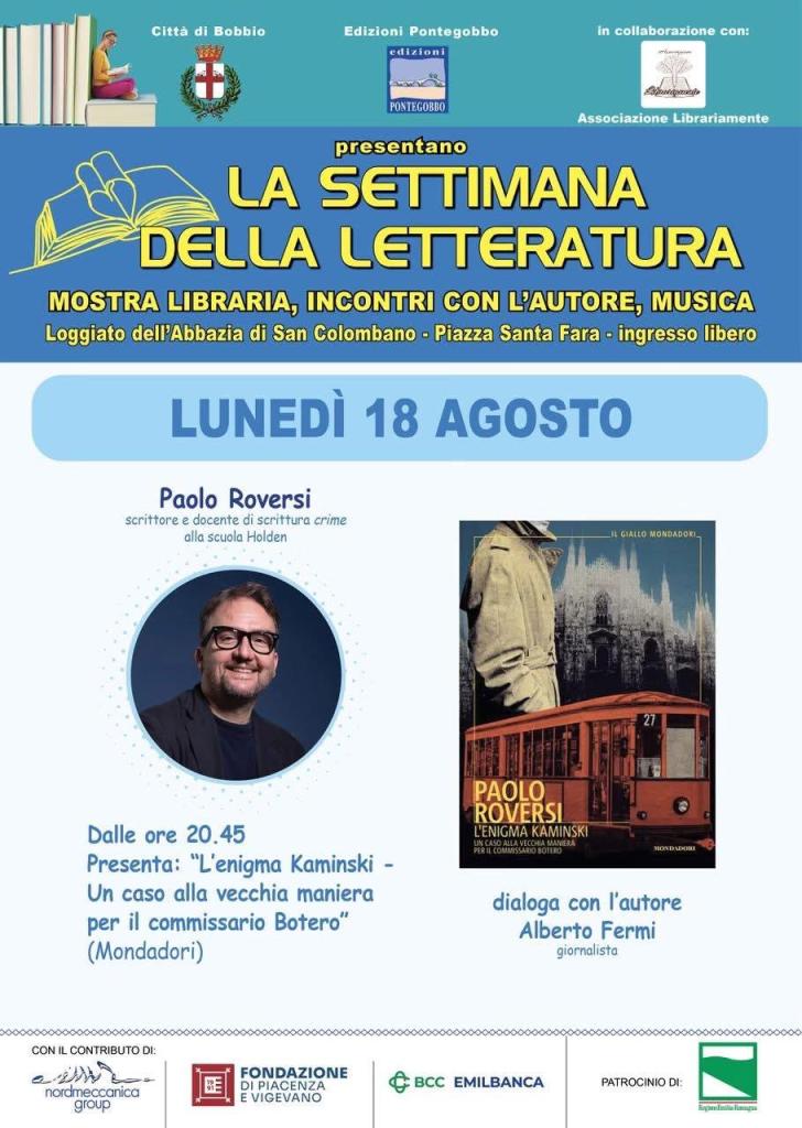 Lunedì 18 agosto 2025, all’interno della “Settimana della letteratura” di Bobbio (PC), incontro con Paolo Roversi, autore del libro “L’enigma Kaminski”.