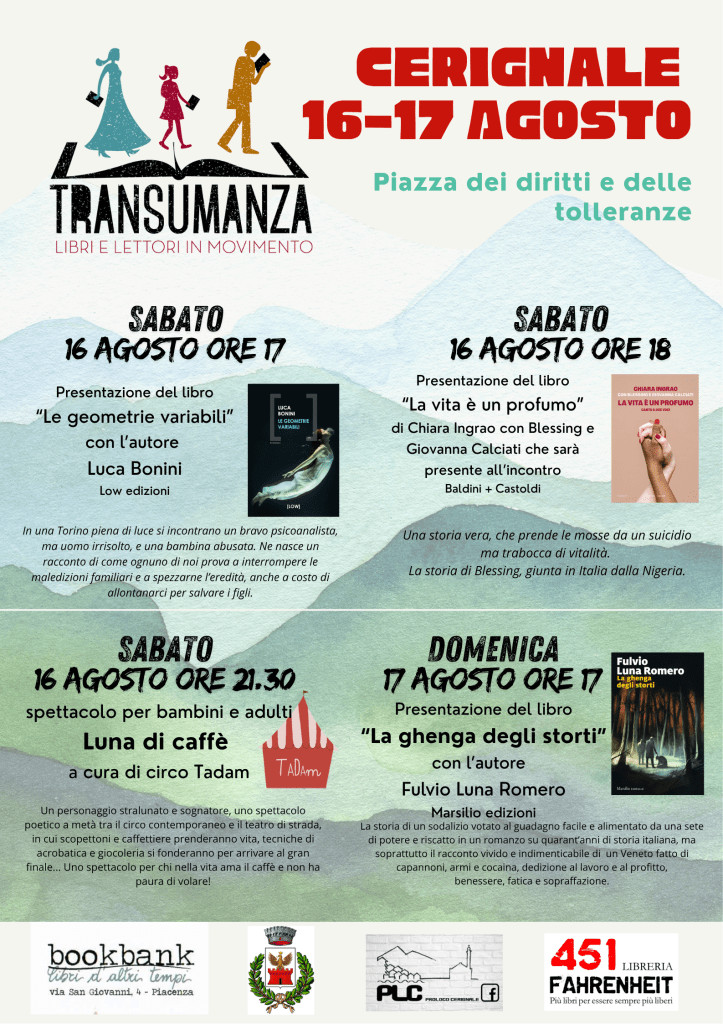 Il 16 e 17 agosto 2025, a Cerignale (PC), libri elettori in movimento con il festival “Transumanza”.