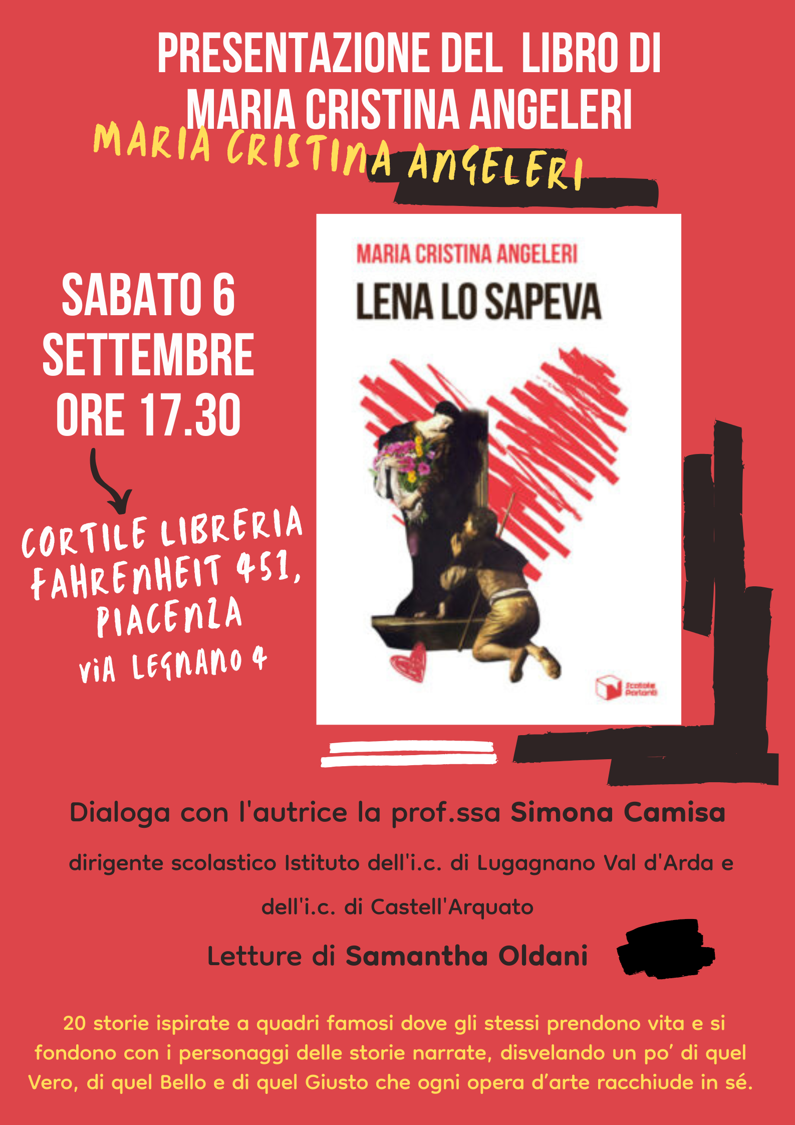 Sabato 6 settembre 2025 ore 17.30, nel cortile della Libreria Fahrenheit 451, incontro con Maria Cristina Angeleri, autrice del libro “Lena lo sapeva” (ed. Scatole Parlanti).