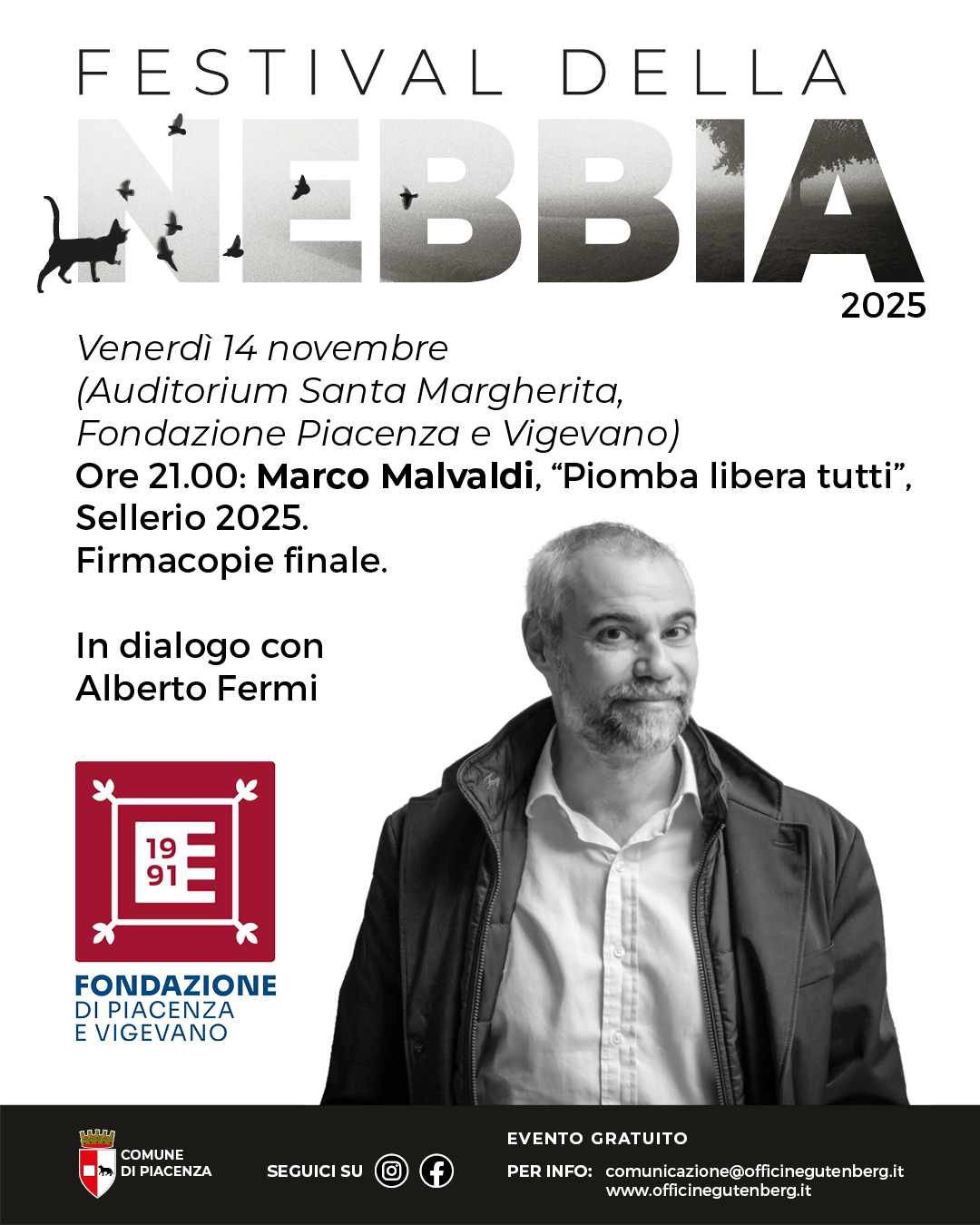 Venerdì 14 novembre 2025, nell’ambito del Festival della Nebbia di Piacenza, incontro con Marco Malvaldi, autore di “Piomba libera tutti” (Sellerio, 2025).