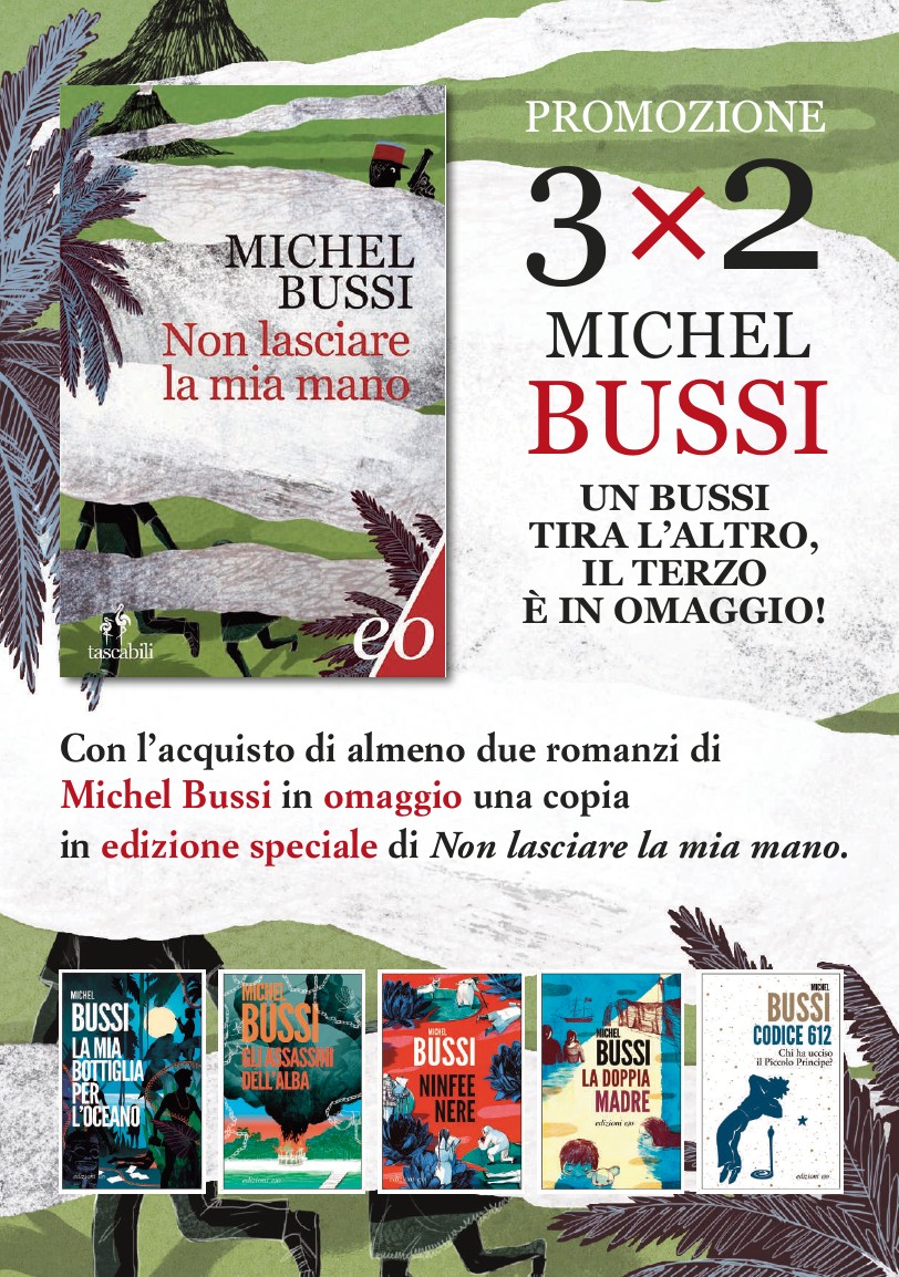 Con le edizioni E/O offerta sui libri di Michel Bussi: con due titoli acquistati, il terzo in omaggio è “Non lasciare la mia mano” in edizione speciale.